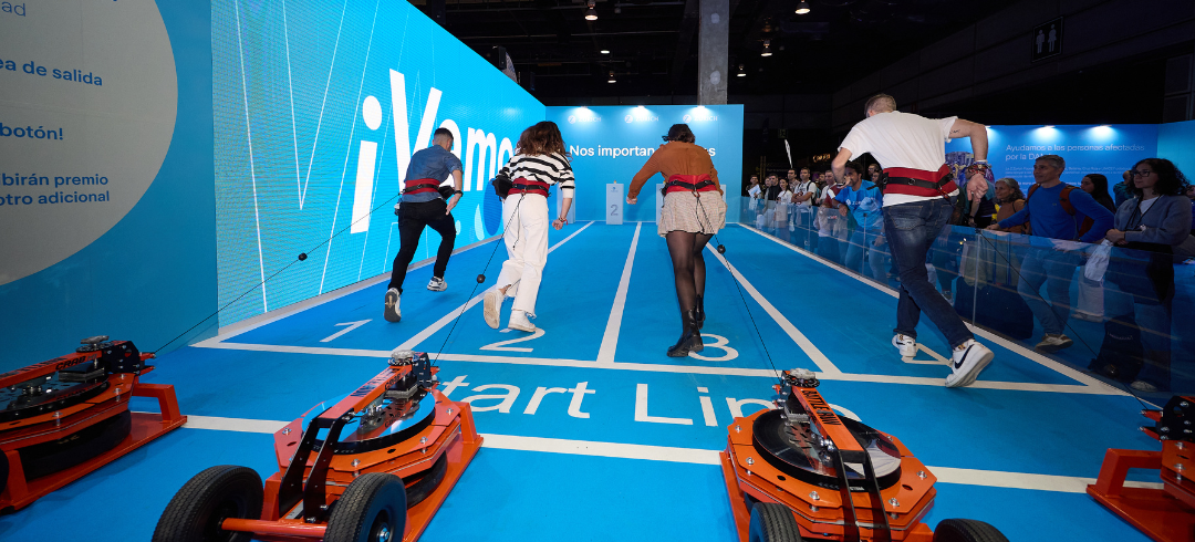 ¿Te gustan los retos dentro de los retos? Entonces no puedes dejar de participar (o al menos contemplar como espectador/a) en nuestra nueva atracción: “Crab”. Se trata de una competición breve y muy divertida, pensada para cuatro participantes que deberán correr en una pista de atletismo improvisada en nuestro stand, luchando por llegar a la meta que simboliza “su reto” personal. Imagina el ambiente: música motivadora, porras del público y un speaker que anima a los corredores/as a darlo todo durante esos escasos metros.